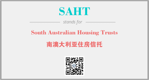 上述内容是“South Australian Housing Trusts”作为“SAHT”的缩写,解释为“南澳大利亚住房信托”时的信息,以及英文缩略词SAHT所代表的英文单词,其对应的中文拼音、详细解释以及在英文中的流行度和相关分类、应用领域及应用示例等。