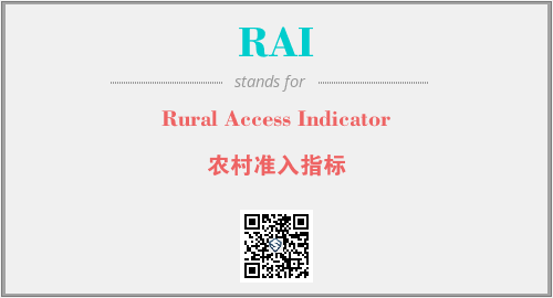 上述内容是“Rural Access Indicator”作为“RAI”的缩写,解释为“农村准入指标”时的信息,以及英文缩略词RAI所代表的英文单词,其对应的中文拼音、详细解释以及在英文中的流行度和相关分类、应用领域及应用示例等。