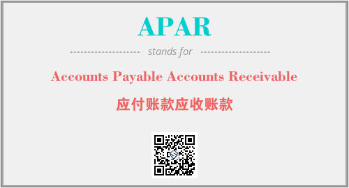 英文缩略词“APAR”经常作为“Accounts Payable Accounts Receivable”的英文缩写来使用,中文表示:“应付账款应收账款”。本文将详细介绍英文缩写词APAR所代表英文单词,其对应的中文拼音、详细解释以及在英语中的流行度。此外,还有关于缩略词APAR的分类、应用领域及相关应用示例等。