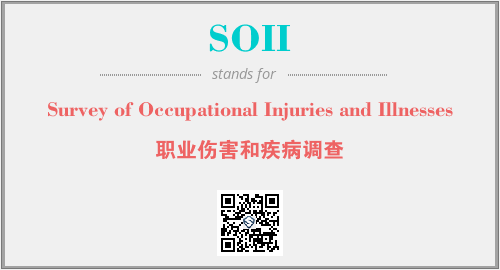 上述内容是“Survey of Occupational Injuries and Illnesses”作为“SOII”的缩写,解释为“职业伤害和疾病调查”时的信息,以及英文缩略词SOII所代表的英文单词,其对应的中文拼音、详细解释以及在英文中的流行度和相关分类、应用领域及应用示例等。