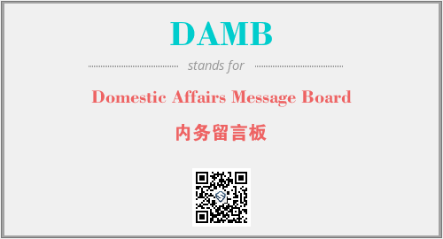 上述内容是“Domestic Affairs Message Board”作为“DAMB”的缩写,解释为“内务留言板”时的信息,以及英文缩略词DAMB所代表的英文单词,其对应的中文拼音、详细解释以及在英文中的流行度和相关分类、应用领域及应用示例等。