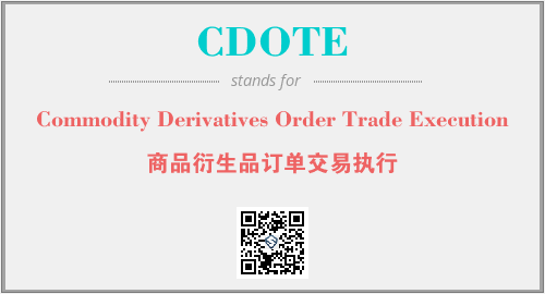 上述内容是“Commodity Derivatives Order Trade Execution”作为“CDOTE”的缩写,解释为“商品衍生品订单交易执行”时的信息,以及英文缩略词CDOTE所代表的英文单词,其对应的中文拼音、详细解释以及在英文中的流行度和相关分类、应用领域及应用示例等。