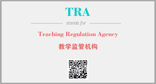 上述内容是“Teaching Regulation Agency”作为“TRA”的缩写,解释为“教学监管机构”时的信息,以及英文缩略词TRA所代表的英文单词,其对应的中文拼音、详细解释以及在英文中的流行度和相关分类、应用领域及应用示例等。