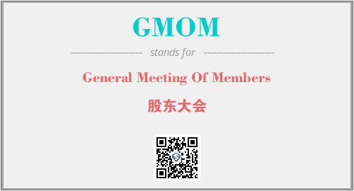 英文缩略词“GMOM”经常作为“General Meeting Of Members”的英文缩写来使用,中文表示:“股东大会”。本文将详细介绍英文缩写词GMOM所代表英文单词,其对应的中文拼音、详细解释以及在英语中的流行度。此外,还有关于缩略词GMOM的分类、应用领域及相关应用示例等。