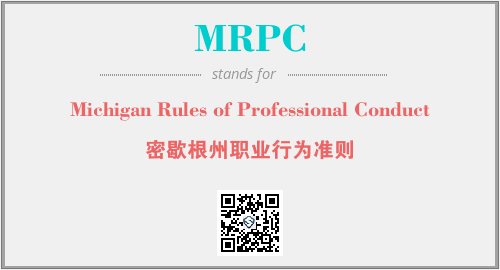 以上为Michigan Rules of Professional Conduct英文缩略词MRPC的中文解释,以及该英文缩写在英语的流行度、分类和应用领域方面的信息。