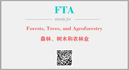 上述内容是“Forests, Trees, and Agroforestry”作为“FTA”的缩写,解释为“森林、树木和农林业”时的信息,以及英文缩略词FTA所代表的英文单词,其对应的中文拼音、详细解释以及在英文中的流行度和相关分类、应用领域及应用示例等。