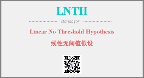 上述内容是“Linear No Threshold Hypothesis”作为“LNTH”的缩写,解释为“线性无阈值假设”时的信息,以及英文缩略词LNTH所代表的英文单词,其对应的中文拼音、详细解释以及在英文中的流行度和相关分类、应用领域及应用示例等。