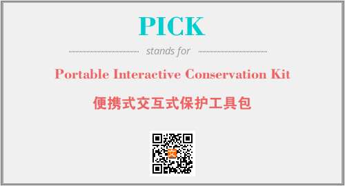 以上为Portable Interactive Conservation Kit英文缩略词PICK的中文解释,以及该英文缩写在英语的流行度、分类和应用领域方面的信息。