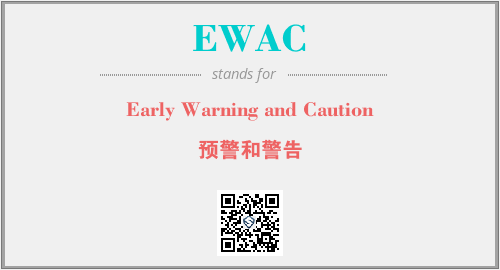 英文缩略词“EWAC”经常作为“Early Warning and Caution”的英文缩写来使用,中文表示:“预警和警告”。本文将详细介绍英文缩写词EWAC所代表英文单词,其对应的中文拼音、详细解释以及在英语中的流行度。此外,还有关于缩略词EWAC的分类、应用领域及相关应用示例等。