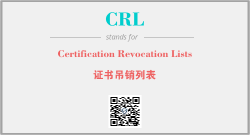 英文缩略词“CRL”经常作为“Certification Revocation Lists”的英文缩写来使用,中文表示:“证书吊销列表”。本文将详细介绍英文缩写词CRL所代表英文单词,其对应的中文拼音、详细解释以及在英语中的流行度。此外,还有关于缩略词CRL的分类、应用领域及相关应用示例等。