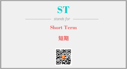 英文缩略词“ST”经常作为“Short Term”的英文缩写来使用,中文表示:“短期”。本文将详细介绍英文缩写词ST所代表英文单词,其对应的中文拼音、详细解释以及在英语中的流行度。此外,还有关于缩略词ST的分类、应用领域及相关应用示例等。