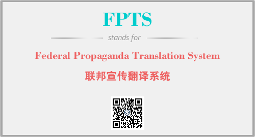 以上为Federal Propaganda Translation System英文缩略词FPTS的中文解释,以及该英文缩写在英语的流行度、分类和应用领域方面的信息。