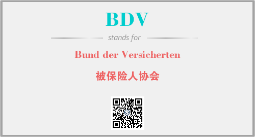 上述内容是“Bund der Versicherten”作为“BDV”的缩写,解释为“被保险人协会”时的信息,以及英文缩略词BDV所代表的英文单词,其对应的中文拼音、详细解释以及在英文中的流行度和相关分类、应用领域及应用示例等。