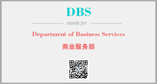 英文缩略词“DBS”经常作为“Department of Business Services”的英文缩写来使用,中文表示:“商业服务部”。本文将详细介绍英文缩写词DBS所代表英文单词,其对应的中文拼音、详细解释以及在英语中的流行度。此外,还有关于缩略词DBS的分类、应用领域及相关应用示例等。