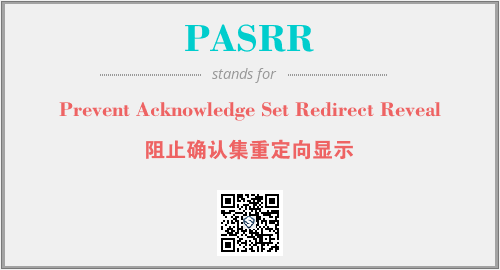 上述内容是“Prevent Acknowledge Set Redirect Reveal”作为“PASRR”的缩写,解释为“阻止确认集重定向显示”时的信息,以及英文缩略词PASRR所代表的英文单词,其对应的中文拼音、详细解释以及在英文中的流行度和相关分类、应用领域及应用示例等。