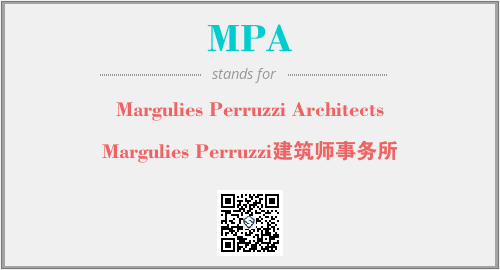 上述内容是“Margulies Perruzzi Architects”作为“MPA”的缩写,解释为“Margulies Perruzzi建筑师事务所”时的信息,以及英文缩略词MPA所代表的英文单词,其对应的中文拼音、详细解释以及在英文中的流行度和相关分类、应用领域及应用示例等。