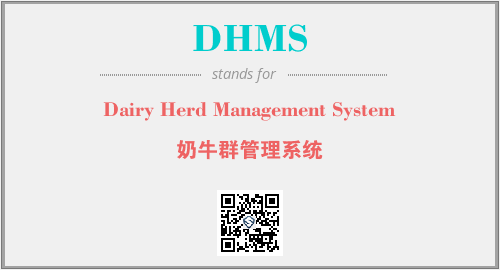 英文缩略词“DHMS”经常作为“Dairy Herd Management System”的英文缩写来使用,中文表示:“奶牛群管理系统”。本文将详细介绍英文缩写词DHMS所代表英文单词,其对应的中文拼音、详细解释以及在英语中的流行度。此外,还有关于缩略词DHMS的分类、应用领域及相关应用示例等。