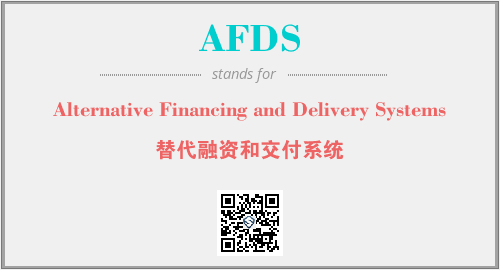 上述内容是“Alternative Financing and Delivery Systems”作为“AFDS”的缩写,解释为“替代融资和交付系统”时的信息,以及英文缩略词AFDS所代表的英文单词,其对应的中文拼音、详细解释以及在英文中的流行度和相关分类、应用领域及应用示例等。