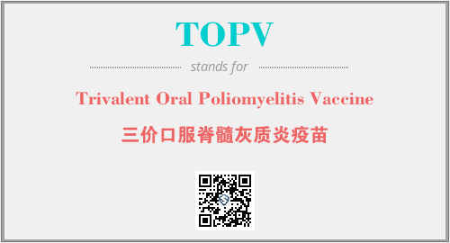 英文缩略词“TOPV”经常作为“Trivalent Oral Poliomyelitis Vaccine”的英文缩写来使用,中文表示:“三价口服脊髓灰质炎疫苗”。本文将详细介绍英文缩写词TOPV所代表英文单词,其对应的中文拼音、详细解释以及在英语中的流行度。此外,还有关于缩略词TOPV的分类、应用领域及相关应用示例等。