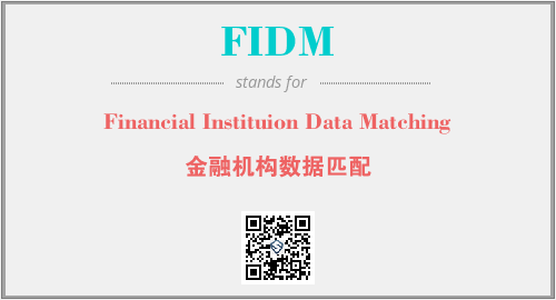 上述内容是“Financial Instituion Data Matching”作为“FIDM”的缩写,解释为“金融机构数据匹配”时的信息,以及英文缩略词FIDM所代表的英文单词,其对应的中文拼音、详细解释以及在英文中的流行度和相关分类、应用领域及应用示例等。
