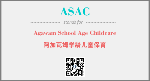 英文缩略词“ASAC”经常作为“Agawam School Age Childcare”的英文缩写来使用,中文表示:“阿加瓦姆学龄儿童保育”。本文将详细介绍英文缩写词ASAC所代表英文单词,其对应的中文拼音、详细解释以及在英语中的流行度。此外,还有关于缩略词ASAC的分类、应用领域及相关应用示例等。