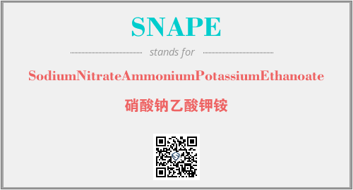 以上为SodiumNitrateAmmoniumPotassiumEthanoate英文缩略词SNAPE的中文解释,以及该英文缩写在英语的流行度、分类和应用领域方面的信息。