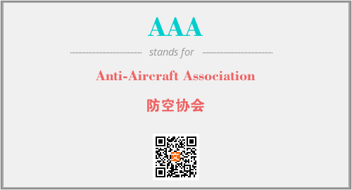 上述内容是“Anti-Aircraft Association”作为“AAA”的缩写,解释为“防空协会”时的信息,以及英文缩略词AAA所代表的英文单词,其对应的中文拼音、详细解释以及在英文中的流行度和相关分类、应用领域及应用示例等。