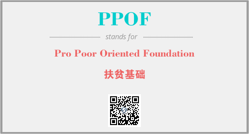 上述内容是“Pro Poor Oriented Foundation”作为“PPOF”的缩写,解释为“扶贫基础”时的信息,以及英文缩略词PPOF所代表的英文单词,其对应的中文拼音、详细解释以及在英文中的流行度和相关分类、应用领域及应用示例等。