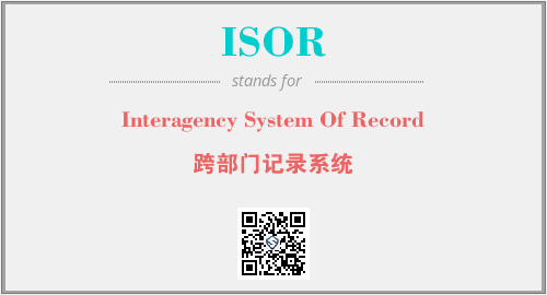 上述内容是“Interagency System Of Record”作为“ISOR”的缩写,解释为“跨部门记录系统”时的信息,以及英文缩略词ISOR所代表的英文单词,其对应的中文拼音、详细解释以及在英文中的流行度和相关分类、应用领域及应用示例等。
