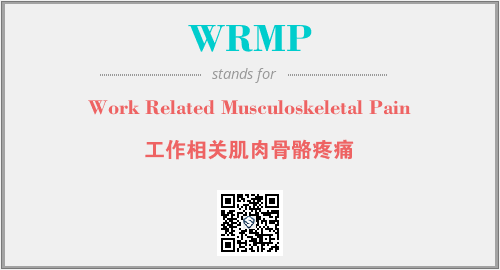 上述内容是“Work Related Musculoskeletal Pain”作为“WRMP”的缩写,解释为“工作相关肌肉骨骼疼痛”时的信息,以及英文缩略词WRMP所代表的英文单词,其对应的中文拼音、详细解释以及在英文中的流行度和相关分类、应用领域及应用示例等。