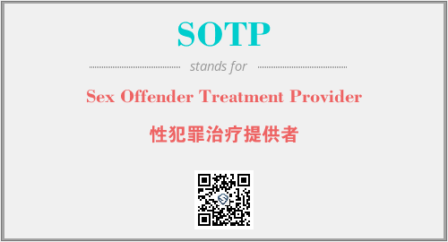 上述内容是“Sex Offender Treatment Provider”作为“SOTP”的缩写,解释为“性犯罪治疗提供者”时的信息,以及英文缩略词SOTP所代表的英文单词,其对应的中文拼音、详细解释以及在英文中的流行度和相关分类、应用领域及应用示例等。