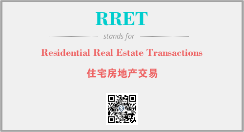 英文缩略词“RRET”经常作为“Residential Real Estate Transactions”的英文缩写来使用,中文表示:“住宅房地产交易”。本文将详细介绍英文缩写词RRET所代表英文单词,其对应的中文拼音、详细解释以及在英语中的流行度。此外,还有关于缩略词RRET的分类、应用领域及相关应用示例等。