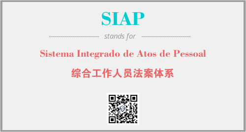 以上为Sistema Integrado de Atos de Pessoal英文缩略词SIAP的中文解释,以及该英文缩写在英语的流行度、分类和应用领域方面的信息。