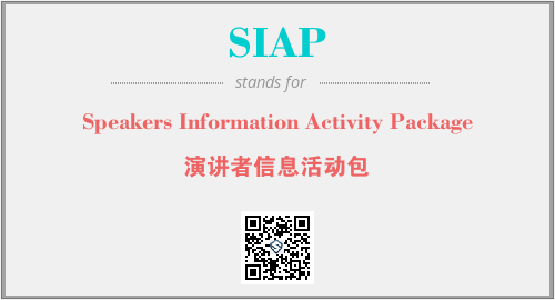 上述内容是“Speakers Information Activity Package”作为“SIAP”的缩写,解释为“演讲者信息活动包”时的信息,以及英文缩略词SIAP所代表的英文单词,其对应的中文拼音、详细解释以及在英文中的流行度和相关分类、应用领域及应用示例等。