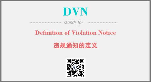 英文缩略词“DVN”经常作为“Definition of Violation Notice”的英文缩写来使用,中文表示:“违规通知的定义”。本文将详细介绍英文缩写词DVN所代表英文单词,其对应的中文拼音、详细解释以及在英语中的流行度。此外,还有关于缩略词DVN的分类、应用领域及相关应用示例等。