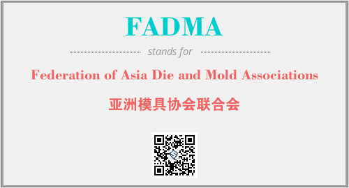 上述内容是“Federation of Asia Die and Mold Associations”作为“FADMA”的缩写,解释为“亚洲模具协会联合会”时的信息,以及英文缩略词FADMA所代表的英文单词,其对应的中文拼音、详细解释以及在英文中的流行度和相关分类、应用领域及应用示例等。