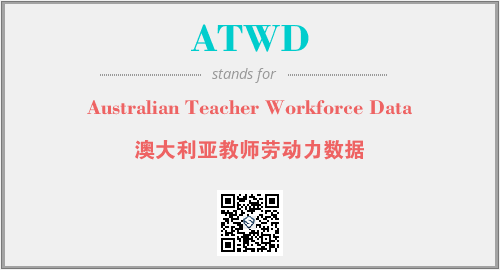英文缩略词“ATWD”经常作为“Australian Teacher Workforce Data”的英文缩写来使用,中文表示:“澳大利亚教师劳动力数据”。本文将详细介绍英文缩写词ATWD所代表英文单词,其对应的中文拼音、详细解释以及在英语中的流行度。此外,还有关于缩略词ATWD的分类、应用领域及相关应用示例等。
