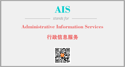 英文缩略词“AIS”经常作为“Administrative Information Services”的英文缩写来使用,中文表示:“行政信息服务”。本文将详细介绍英文缩写词AIS所代表英文单词,其对应的中文拼音、详细解释以及在英语中的流行度。此外,还有关于缩略词AIS的分类、应用领域及相关应用示例等。