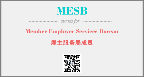 上述内容是“Member Employer Services Bureau”作为“MESB”的缩写,解释为“雇主服务局成员”时的信息,以及英文缩略词MESB所代表的英文单词,其对应的中文拼音、详细解释以及在英文中的流行度和相关分类、应用领域及应用示例等。