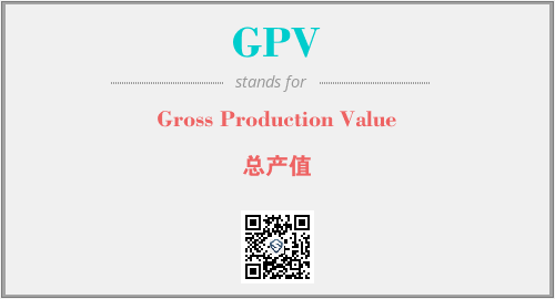 英文缩略词“GPV”经常作为“Gross Production Value”的英文缩写来使用,中文表示:“总产值”。本文将详细介绍英文缩写词GPV所代表英文单词,其对应的中文拼音、详细解释以及在英语中的流行度。此外,还有关于缩略词GPV的分类、应用领域及相关应用示例等。
