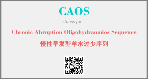 上述内容是“Chronic Abruption Oligohydramnios Sequence”作为“CAOS”的缩写,解释为“慢性早发型羊水过少序列”时的信息,以及英文缩略词CAOS所代表的英文单词,其对应的中文拼音、详细解释以及在英文中的流行度和相关分类、应用领域及应用示例等。