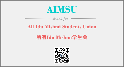 上述内容是“All Idu Mishmi Students Union”作为“AIMSU”的缩写,解释为“所有Idu Mishmi学生会”时的信息,以及英文缩略词AIMSU所代表的英文单词,其对应的中文拼音、详细解释以及在英文中的流行度和相关分类、应用领域及应用示例等。