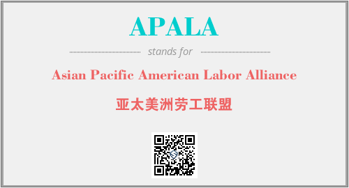 英文缩略词“APALA”经常作为“Asian Pacific American Labor Alliance”的英文缩写来使用,中文表示:“亚太美洲劳工联盟”。本文将详细介绍英文缩写词APALA所代表英文单词,其对应的中文拼音、详细解释以及在英语中的流行度。此外,还有关于缩略词APALA的分类、应用领域及相关应用示例等。