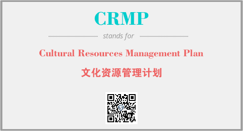 上述内容是“Cultural Resources Management Plan”作为“CRMP”的缩写,解释为“文化资源管理计划”时的信息,以及英文缩略词CRMP所代表的英文单词,其对应的中文拼音、详细解释以及在英文中的流行度和相关分类、应用领域及应用示例等。
