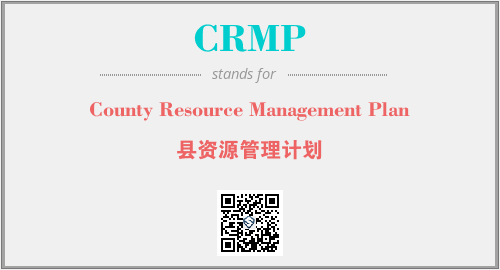 英文缩略词“CRMP”经常作为“County Resource Management Plan”的英文缩写来使用,中文表示:“县资源管理计划”。本文将详细介绍英文缩写词CRMP所代表英文单词,其对应的中文拼音、详细解释以及在英语中的流行度。此外,还有关于缩略词CRMP的分类、应用领域及相关应用示例等。