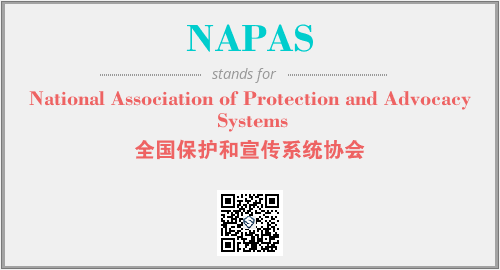 上述内容是“National Association of Protection and Advocacy Systems”作为“NAPAS”的缩写,解释为“全国保护和宣传系统协会”时的信息,以及英文缩略词NAPAS所代表的英文单词,其对应的中文拼音、详细解释以及在英文中的流行度和相关分类、应用领域及应用示例等。