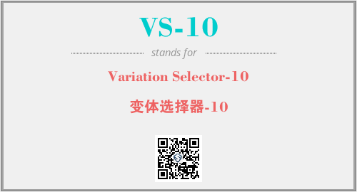 上述内容是“Variation Selector-10”作为“VS-10”的缩写,解释为“变体选择器-10”时的信息,以及英文缩略词VS-10所代表的英文单词,其对应的中文拼音、详细解释以及在英文中的流行度和相关分类、应用领域及应用示例等。