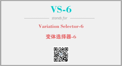 上述内容是“Variation Selector-6”作为“VS-6”的缩写,解释为“变体选择器-6”时的信息,以及英文缩略词VS-6所代表的英文单词,其对应的中文拼音、详细解释以及在英文中的流行度和相关分类、应用领域及应用示例等。