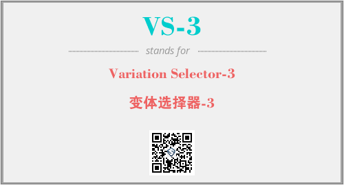 英文缩略词“VS-3”经常作为“Variation Selector-3”的英文缩写来使用,中文表示:“变体选择器-3”。本文将详细介绍英文缩写词VS-3所代表英文单词,其对应的中文拼音、详细解释以及在英语中的流行度。此外,还有关于缩略词VS-3的分类、应用领域及相关应用示例等。