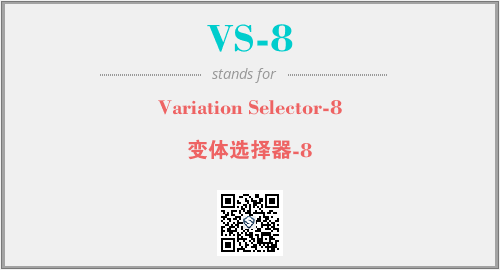 英文缩略词“VS-8”经常作为“Variation Selector-8”的英文缩写来使用,中文表示:“变体选择器-8”。本文将详细介绍英文缩写词VS-8所代表英文单词,其对应的中文拼音、详细解释以及在英语中的流行度。此外,还有关于缩略词VS-8的分类、应用领域及相关应用示例等。